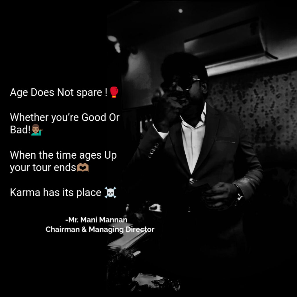 Mr. Mani Mannan, the Chairman and Managing Director of MNM REALTY PRIVATE LIMITED, shares a profound truth in his quote: “Age does not spare! Whether you’re good or bad! When the time ages up, your tour ends. Karma has its place.” This statement invites us to reflect on the inevitability of aging and the significance of our choices throughout our lives. Let’s explore this wisdom and its implications for understanding karma.
